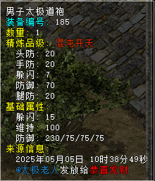 | 鸿蒙至宝 | 身防:80 躲闪:8 头防:25 手防:25 腿防:25 |
