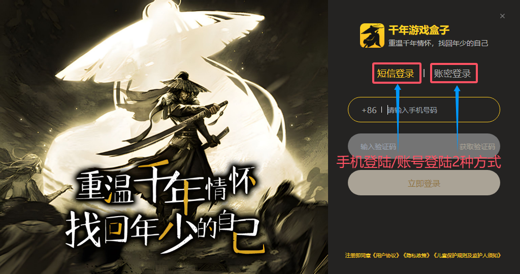 打开千年游戏盒子,登录/注册账号